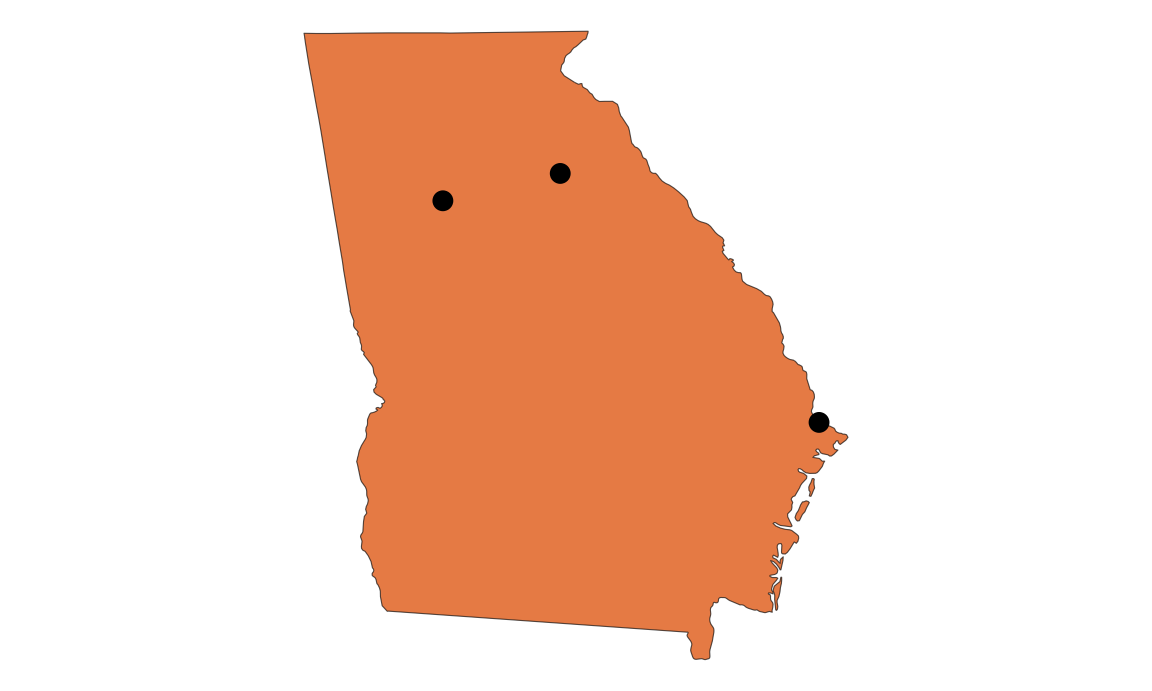 geom_sf(data = ga_cities_geometry, size = 3) +