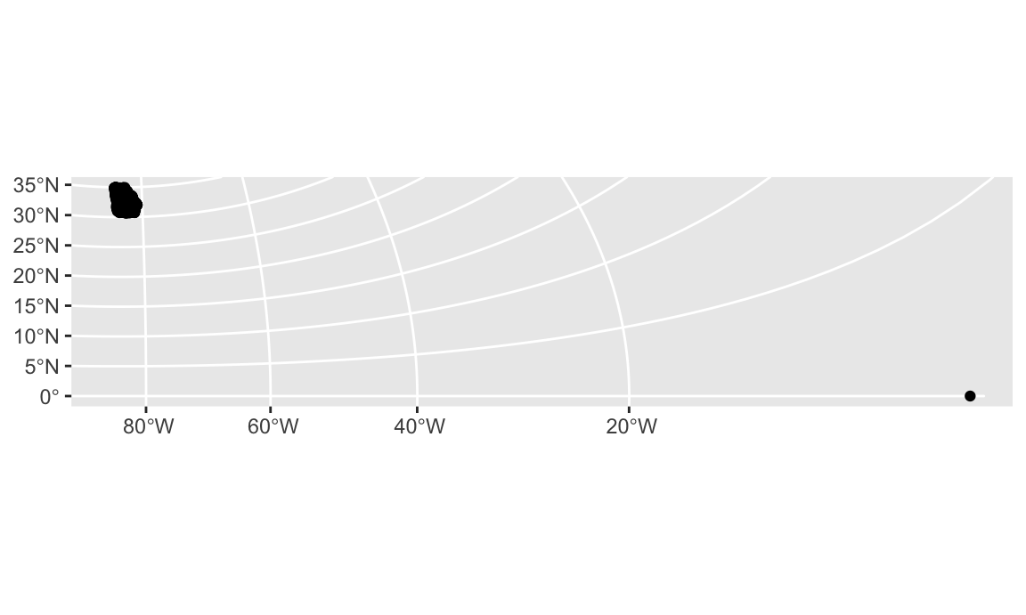 As you read in this week’s readings, projections matter a lot for maps. You can convert your geographic data between different coordinate systems (or projections) fairly easily with {sf}. You can use coord_sf(crs = st_crs("XXXX")) to convert coordinate reference systems (CRS) as you plot, or use st_transform() to convert data frames to a different CRS.