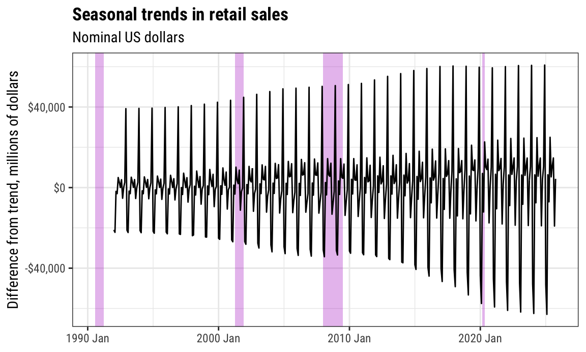 We can also plot individual components on their own using the `retail_components` dataset we made. Here's seasonality by itself: