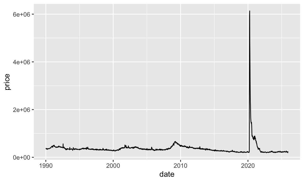 ggplot(retail_sales_only, aes(x = date, y = price)) +