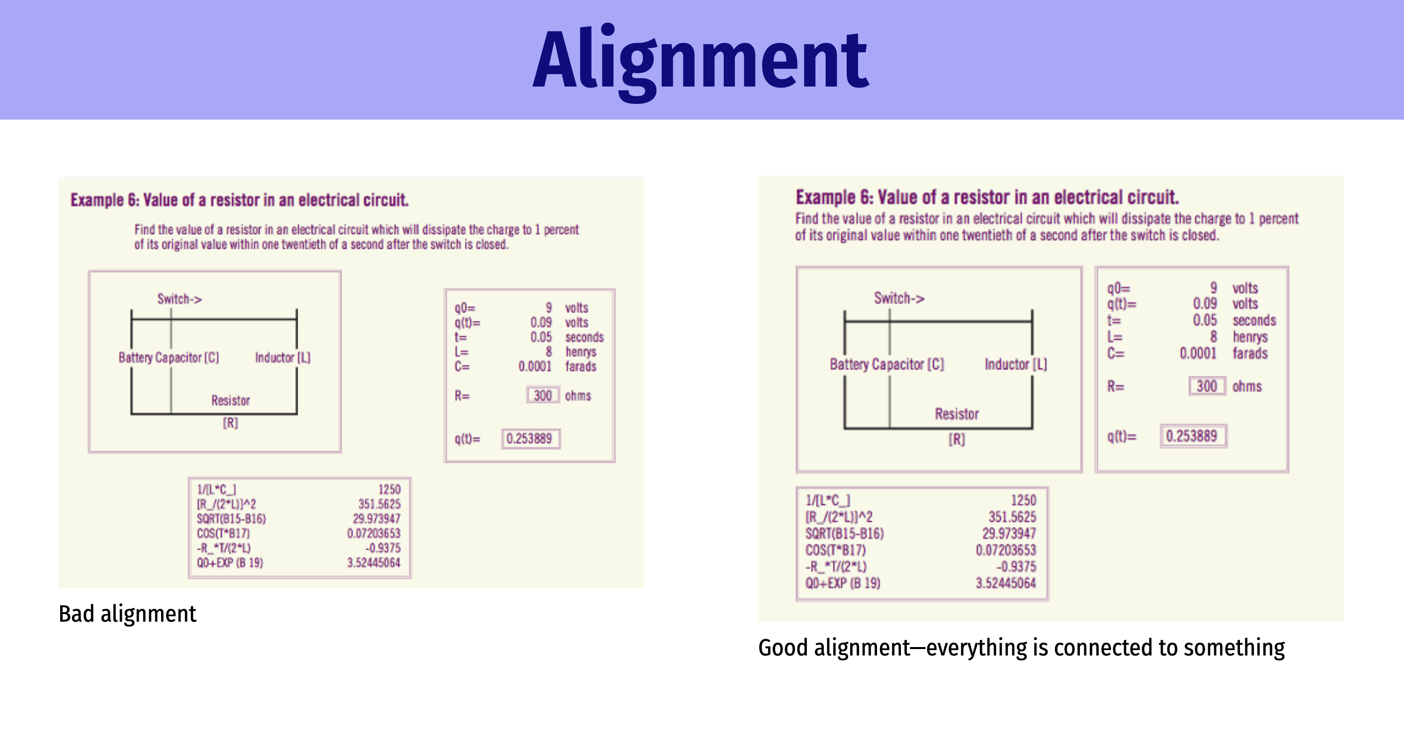 All these general principles capture something deeper and more systematic about how humans think about the world, and they mostly overlap (like, proximity is both a Gestalt principle and the “P” in CRAP). Human minds like it when things are grouped correctly and ordered in nice visual hierarchies with pleasant aesthetics. Both CRAP and the Gestalt Principles provide guidance for how to visually group things in good ways.