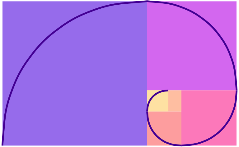For bonus fun, if you draw a curve between the opposite corners of each square of the golden rectangles, you get something called the golden spiral or Fibonacci spiral, which is replicated throughout nature and art. Graphic designers and artists often make the dimensions of their work fit in golden rectangles and will sometimes even overlay a golden spiral over their work and lay out text and images in specific squares and rectangles. See this and this for some examples.