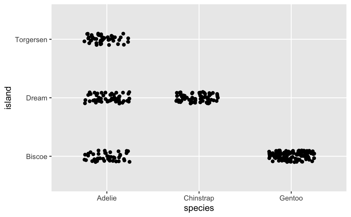 ggplot(penguins, aes(x = species, y = island)) +