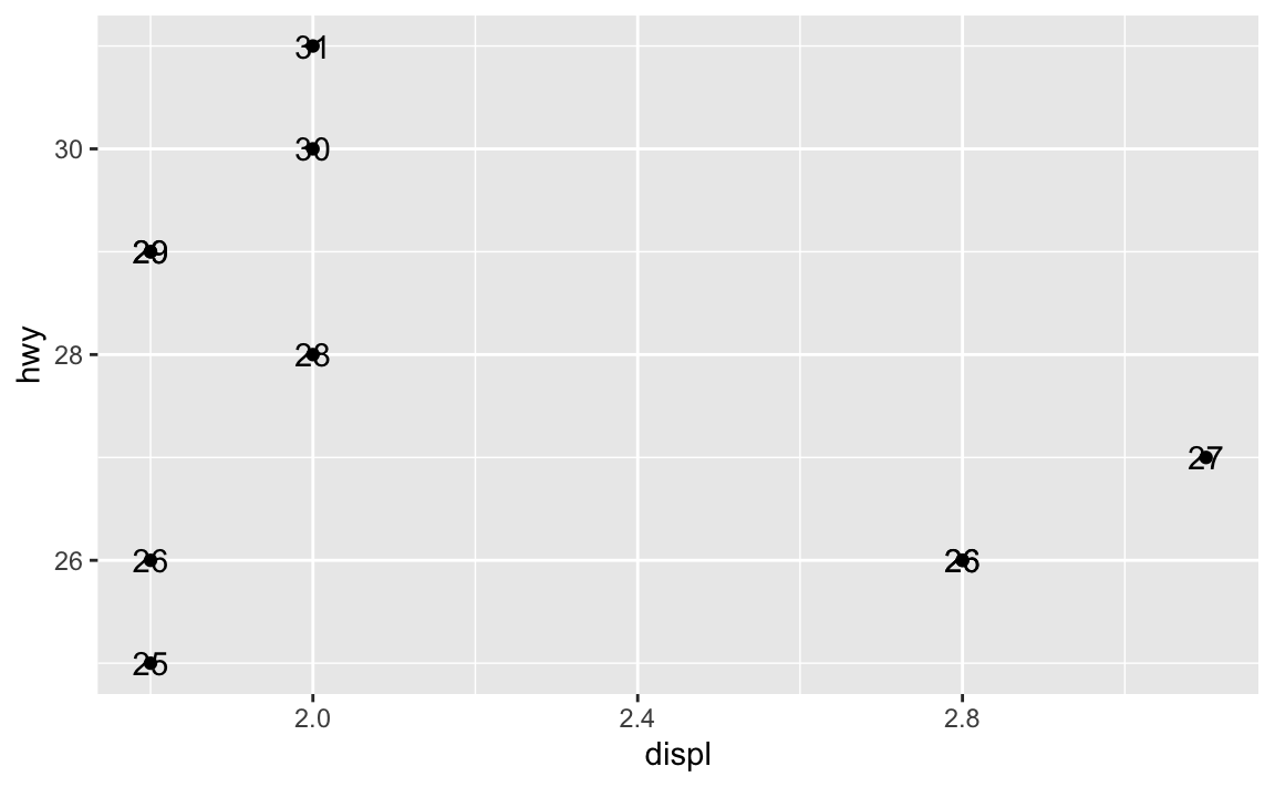 geom_text(aes(label = hwy))