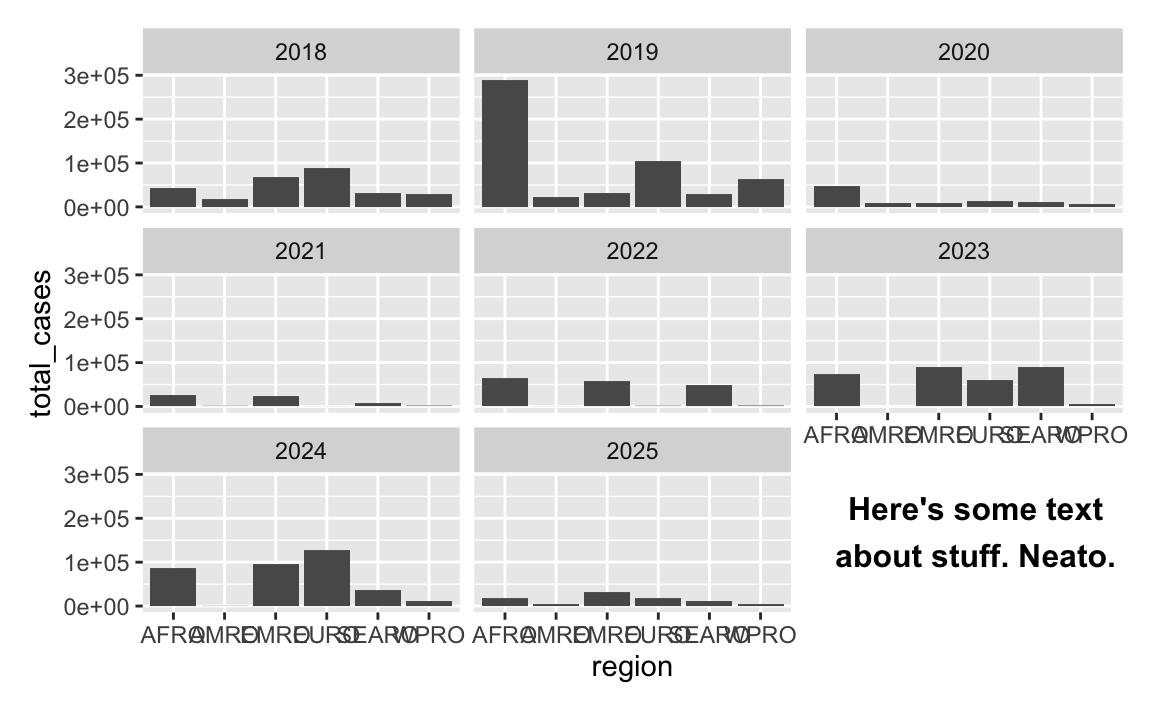 You can even be fancy and add some explanatory text to that corner. It takes a big of extra work—you essentially have to create a fake text-only plot using grid::textGrob() and then use inset_element() from the {patchwork} to place it on top of the main plot: