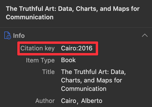 Once it’s installed, you should see a “Citation key” field in each of your Zotero entries. Use that when citing things in your Quarto document.
